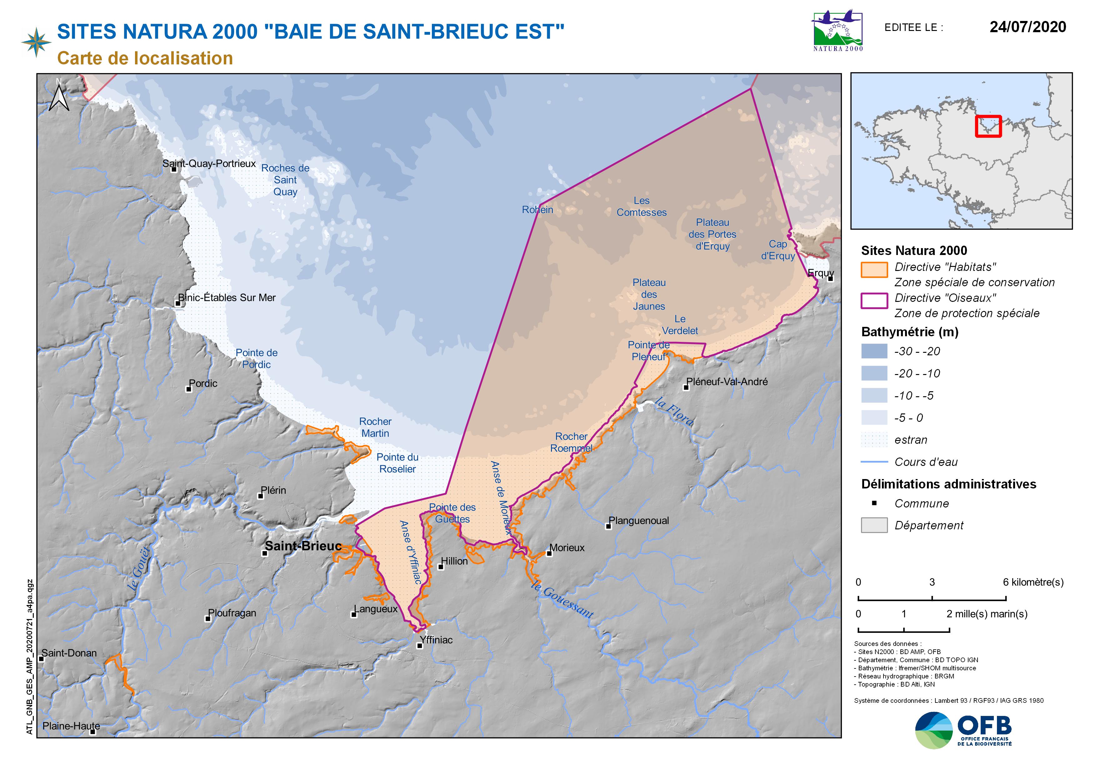 Carte du périmètre du site Natura 2000 de Saint Brieuc Est